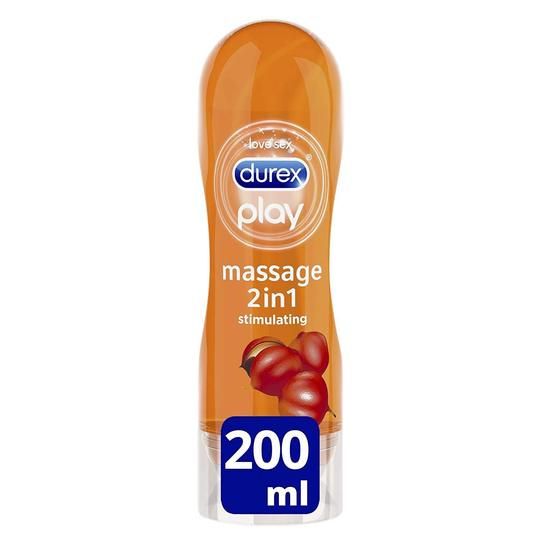 Durex Massage Play 2 in 1 Lubricant 676 fl. Durex is a brand of condoms and personal lubricants owned by the British company Reckitt BenckiserIt was initially developed in London under the purview of the London Rubber. Durex play soothing massage has aloe vera which is soothing.